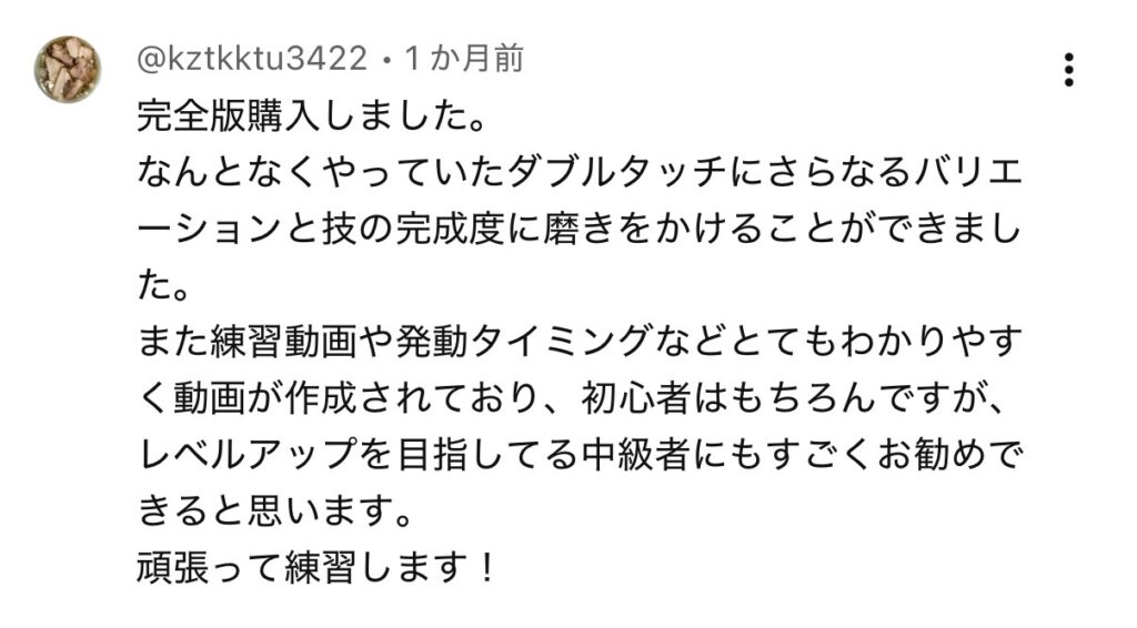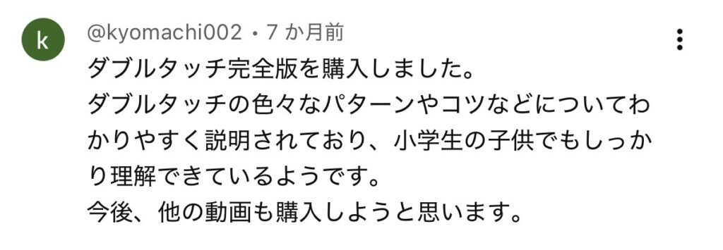下記ボタンから購入後、「ダブルタッチ完全版 – 43分フル動画」がメールにて届きます。
